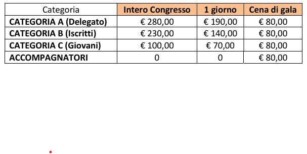 Per la partecipazione al Congresso saranno riconosciuti i seguenti CFP: